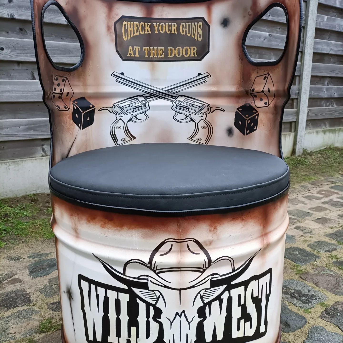 Olie vat omgebouwd tot olie vat stoel, ontwerp door klant, |