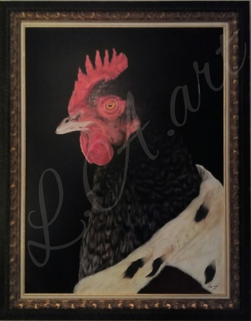 Mien the Queen airbrush portret van 1 van onze kippen, ons Mientje, 60x70 |