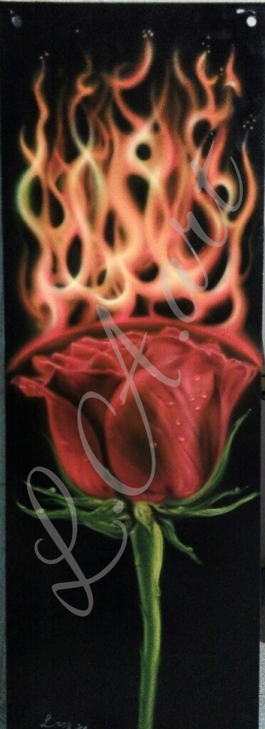 The burning rose airbrush op staalplaat, het kan dus ook op wagens of dergelijke |