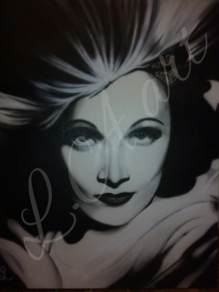 Marlenè on the wall airbrush portret van Marlene Dietrich 30x40 Te Koop/Huur - For Sale/Rent Contacteer mij indien interesse |