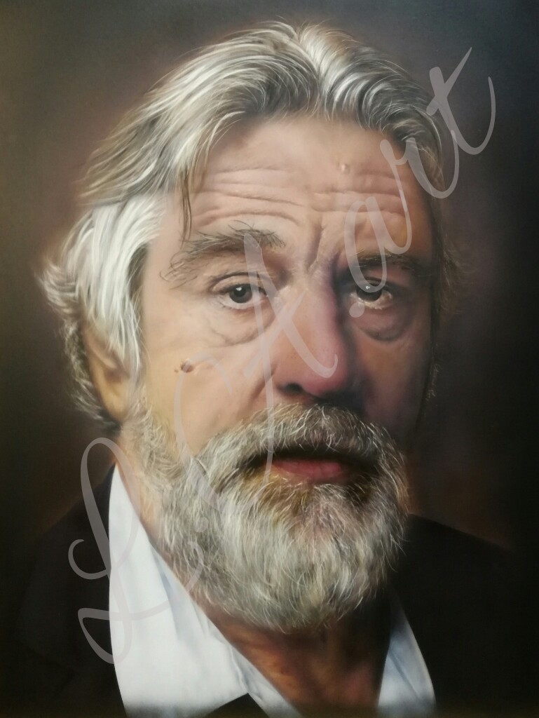 Portret Robert de Niro Hyperrealisme portret, techniek Airbrush op clayboard, prive bezit |