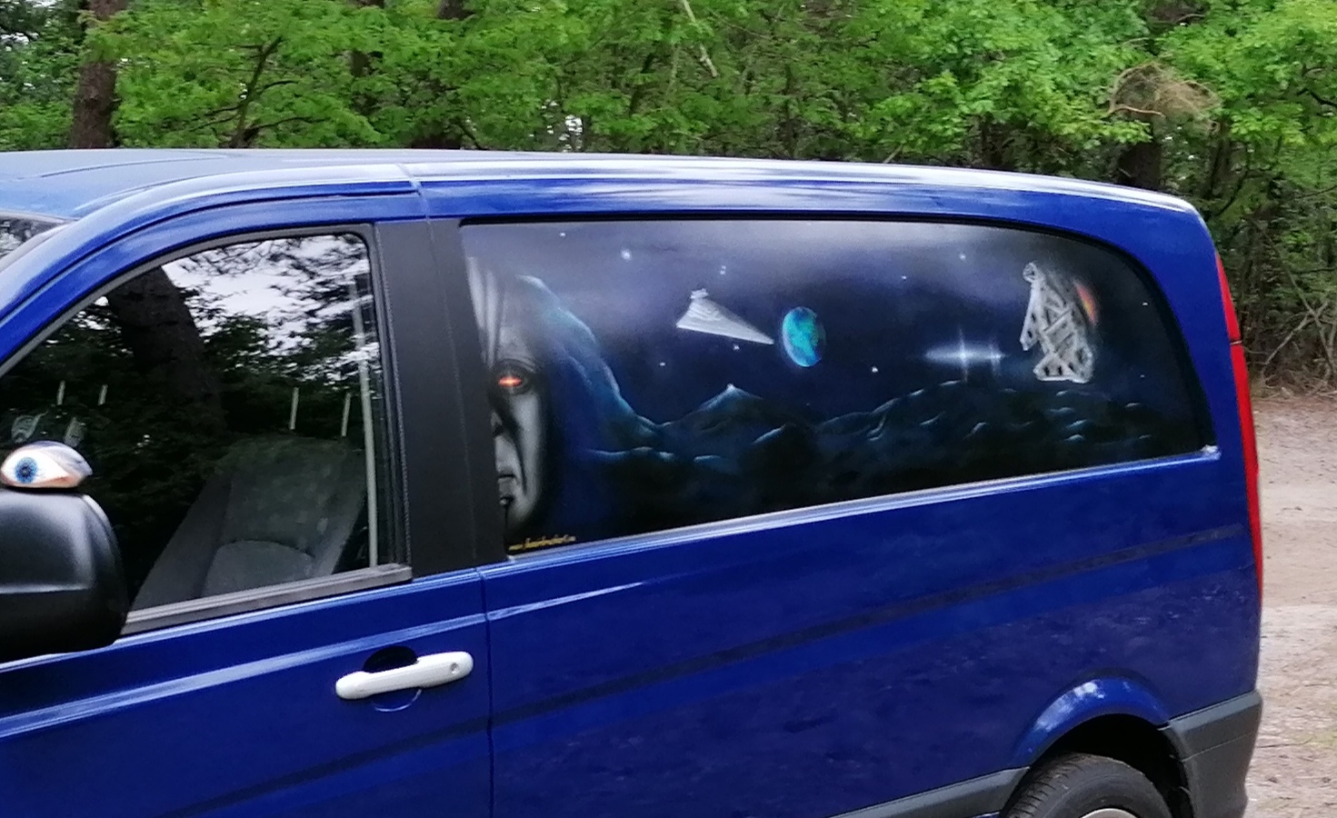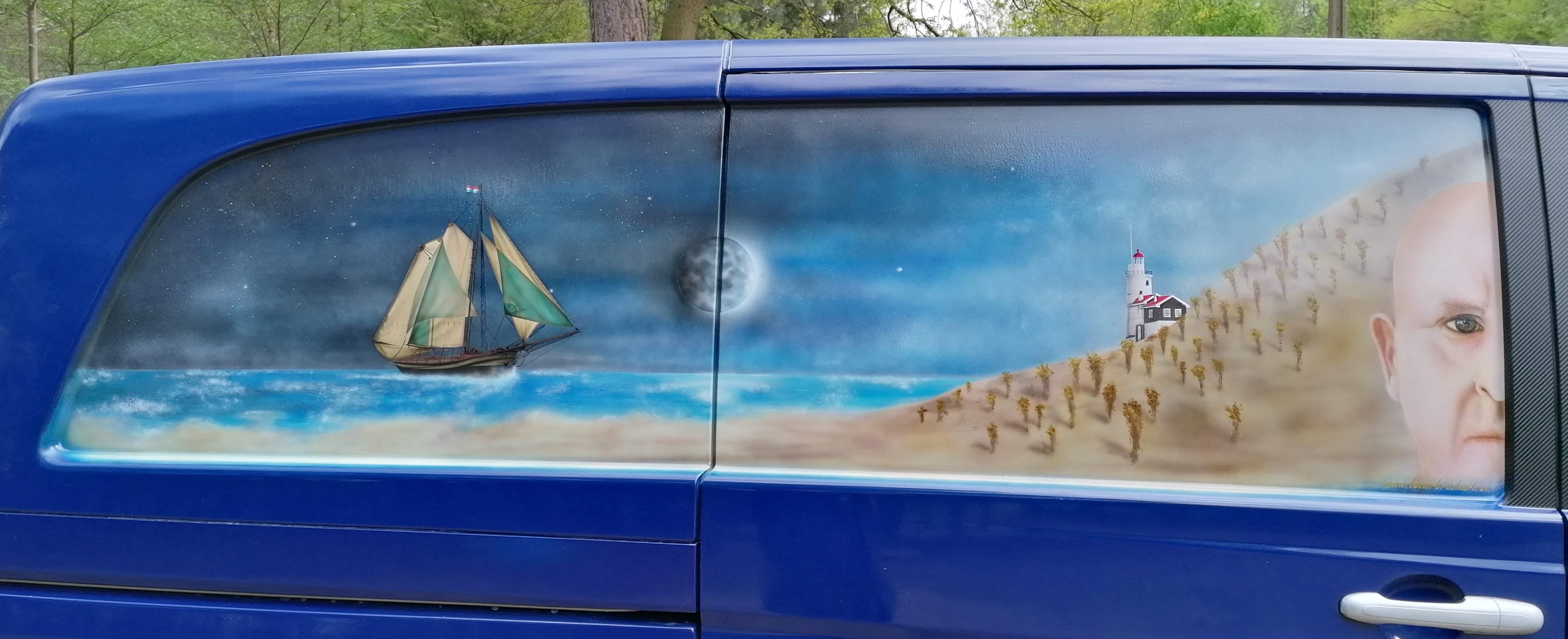 Custom paint on oldtimer Mustang Custom paint, selfie op motorkap |